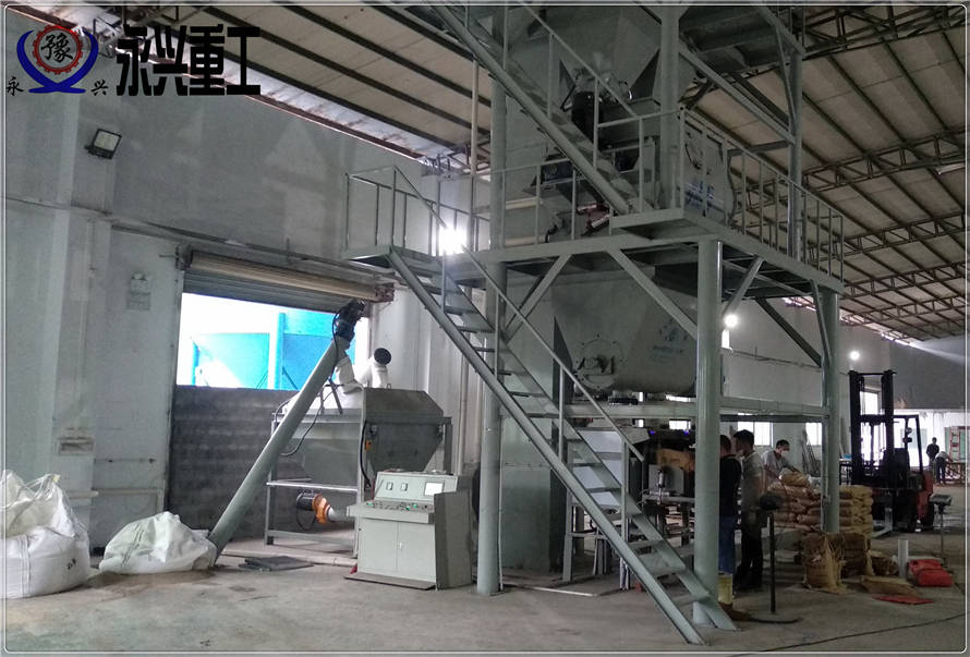 包装系统:生产好的成品可直接经过提升系统进入成品储料仓,也可进行分袋包装储存,以阀口袋包装机使用较多,该包装机采用电脑计量装置、性能稳定、操作简单并配有除尘口,减少粉尘对人体的危害,实现环保型生产。
